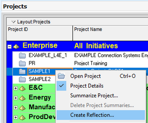 Go to the Main Projects menu, select and highlight the project that you are interested in, and right-click on it to select “Create Reflection…”: